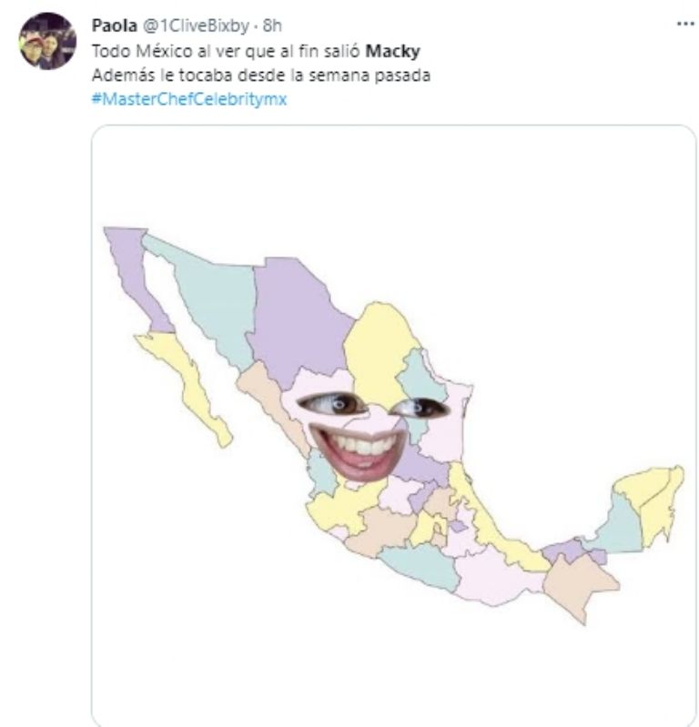 La eliminación de Macky de inmediato hizo estallar las redes sociales, pues desde hace varios capítulos algunos fanáticos del programa deseaban su salida, pues no les parecían algunas actitudes que tomaba como enfrentar a los chefs para tratar de defender sus errores e incluso en algún momento hicieron una recolección de firmas para pedirle a la producción que la sacaran.