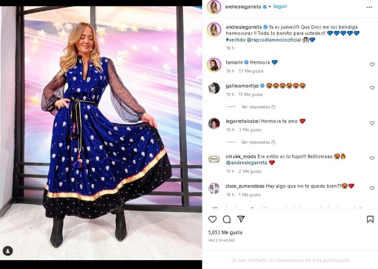 La distinguida publicación de Andrea Legarreta de inmediato se hizo popular en todo Internet, por lo que sus fans no han dejado de elogiarla y escribirle mensajes de cariño por su gran sentido de la moda, entre ellos destacan: "Tan Linda", "Hermosa", "Muy Guapa", "Qué preciosa", entre otros.