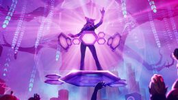 En lugar de su cabello castaño, ella se puso una peluca larga de cuervo con un moño morado para complementar su vestimenta de bruja, ella se sentó al lado de otra versión de ella misma, pero vestida con un vestido blanco largo y andrajoso con una tela transparente en lo alto de su pecho.