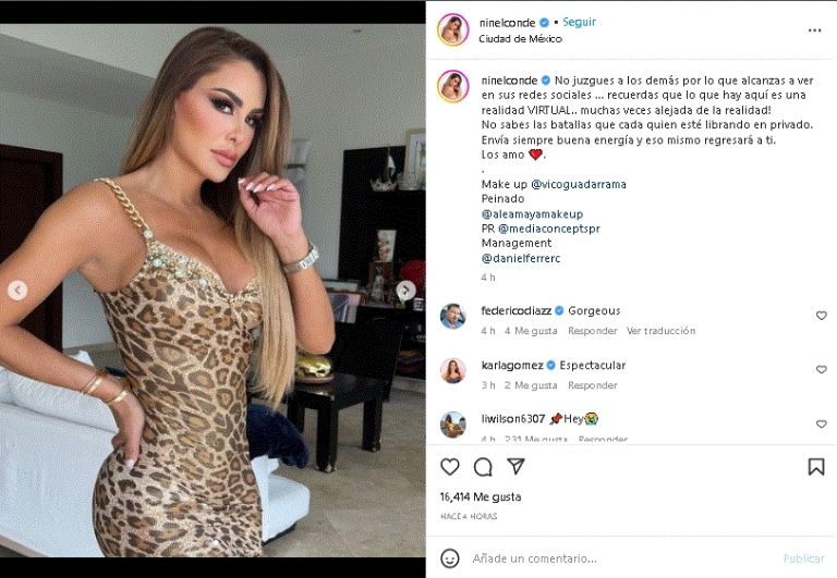 La aclamada cantante y actriz demostró su gran sentido de la moda, luego de posar con un encantador vestido de leopardo en InstagramCiudad de México.- Una vez más la querida cantante Nine Conde publicó una coqueta fotografía de su desde sus redes sociales. Esta se trata de un increíble look que enalteció su destacada apariencia física, pues se dejó ver de lo más espectacular frente a las cámaras del espectáculo.