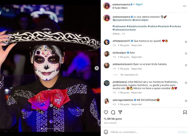 Desde su perfil de Instagram, la exMiss Universo 2020 no solo demostró su gran carisma en televisión, sino que además presumió su excelente gusto por las prendas y cómo combinarlas. En la imagen aparece con un destacado maquillaje de calavera con un traje de charro que resaltó su figura. Una apariencia que en gran medida, enalteció su belleza natural frente a las cámaras del espectáculo internacional.