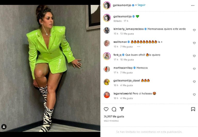 La distinguida publicación de Galilea Montijo de inmediato se hizo popular en todo Internet, por lo que sus fans no han dejado de elogiarla y escribirle mensajes de cariño por su gran sentido de la moda, entre ellos destacan: Amo ese conjunto", "Hermosa", "Guapísima", "Chulada de mujer", "La más bonita", entre otros.
