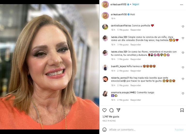 Una prenda que combinó con un peinado suelto liso y un maquillaje en tonalidades cafés que hicieron brillar sus finas facciones. Es por ello que la publicación ya cuenta con más de dos  mil 'Me Gusta' y un sin fin de mensajes que halagan su apariencia, entre ellos: "Hemosa", "Tan bonita", "Qué bonita", Te lo mereces todo de bueno en tu vida mi reina", "Estaremos siempre contigo", "Te amamos, respetamos y tenemos una gran admiración por la mujer fuerte que eres. Eres un gran ejemplo" y más.
