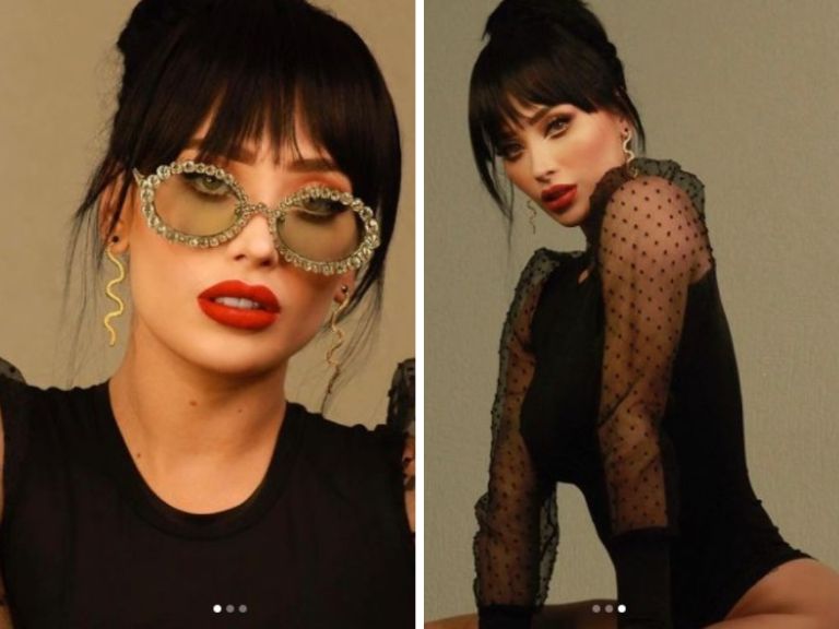 Brenda no decepciona y esta vez se lució al mostrarse glamurosa con un body negro con mangas abullonadas de transparencia, unos aretes de serpientes y unos lentes llenos de brillo, en el cabello optó por un chongo clásico y un maquillaje sutil en el que dejó como protagonista a sus labios.
