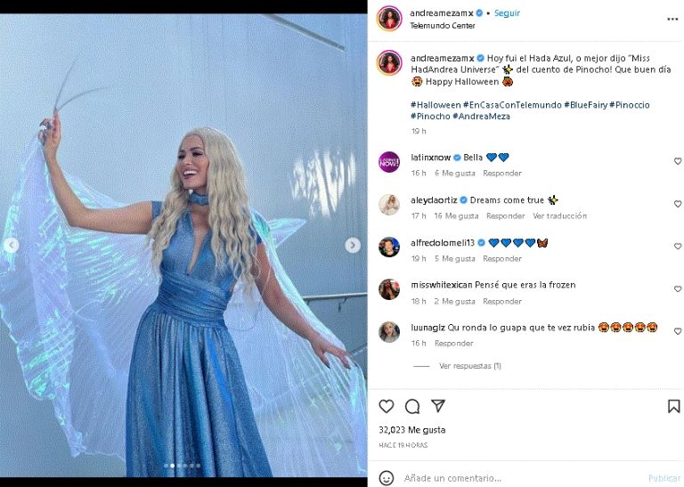 Desde su perfil de Instagram, la exMiss Universo 2020 no solo demostró su gran carisma en televisión, sino que además presumió su excelente gusto por las prendas y cómo combinarlas. En la imagen aparece con un destacado vestido azul y una peluca rubio que representa a un hada. Una apariencia que en gran medida, enalteció su belleza natural frente a las cámaras del espectáculo internacional.