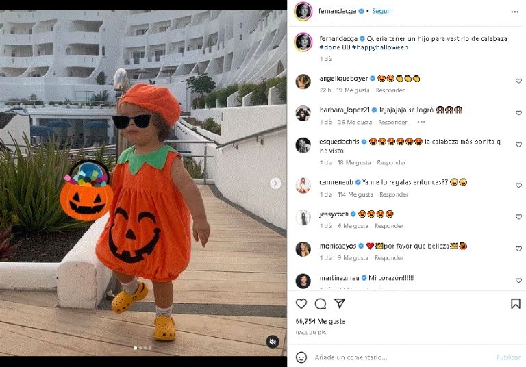 A través de las redes, la estrella de Televisa mostró a su primogénito vía Internet, donde aparecen muy contento posando con un disfraz de calabza. Una instantánea que logró robarse el corazón de sus fieles fanáticos, pues quedaron encantados con el gran apariencia de su descendencia.