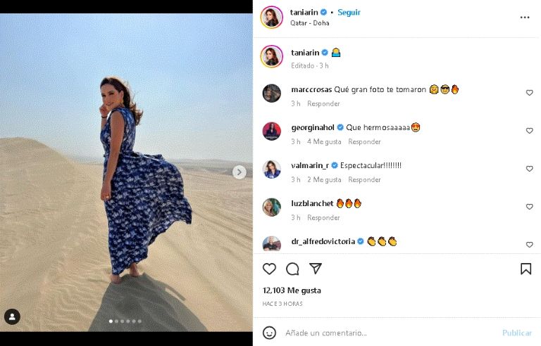 Desde Qatar, Tania Rincón derrocha belleza con destacado vestido azul; así luce la guapa conductora