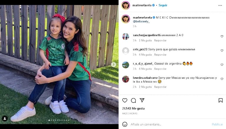 La famosa actriz cautivó a su seguidores de Instagram, luego de publicar una tierna fotografía de su hija Bella SeelyCiudad de México.- La destacada actriz de cine Marlene Favela volvió a las redes sociales y no para compartir su excéntricos viajes, estilo de vida o los increíbles outfits que usa día con día dentro y fuera de los reflectores, más bien publicó una tierna fotografía junto a su hija Bella Seely Favela.