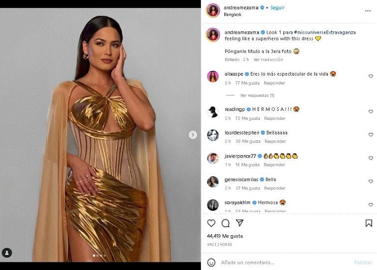 Andrea Meza posa con el encantador vestido dorado y deleita a sus fans