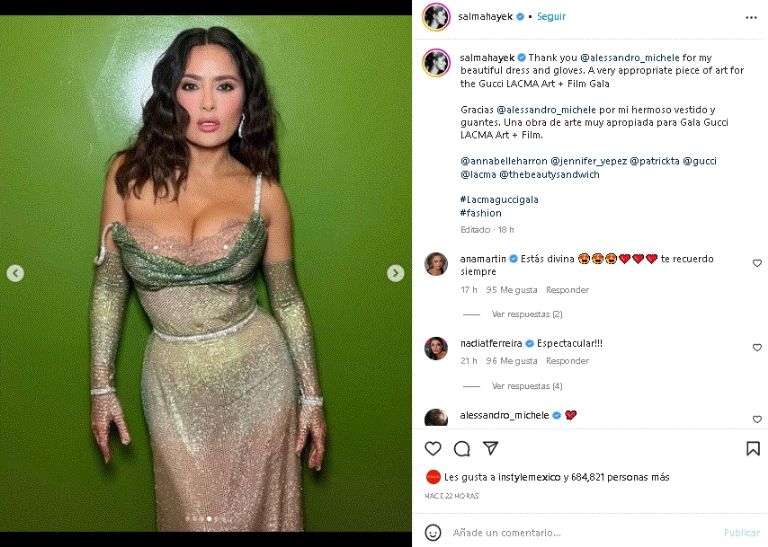 FOTO: Salma Hayek se enfunda en ceñido vestido verde y paraliza las redes