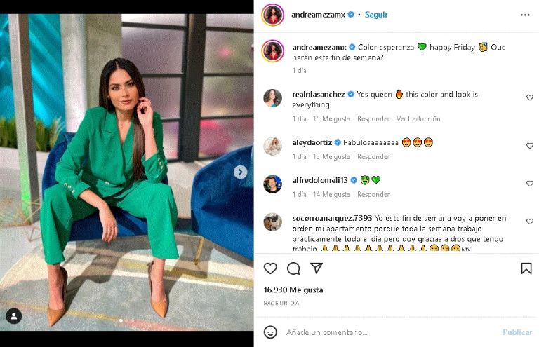 Desde su perfil de Instagram, la exMiss Universo no solo demostró su gran carisma en televisión, sino que además presumió su excelente gusto por las prendas y cómo combinarlas. En la imagen aparece con un destacado conjunto verde que resaltó su figura. Una apariencia que en gran medida, enalteció su belleza natural frente a las cámaras del espectáculo internacional.
