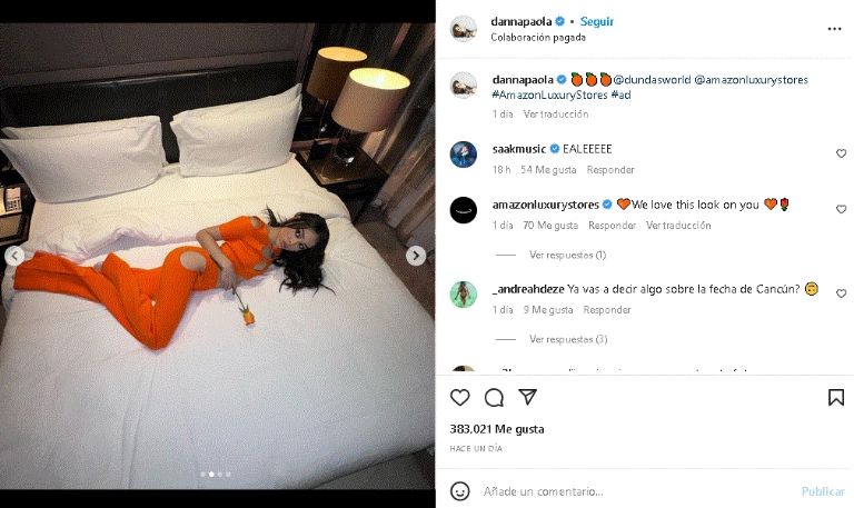 Danna Paola posa con entallado jumpsuit naranja y le llueven halagos