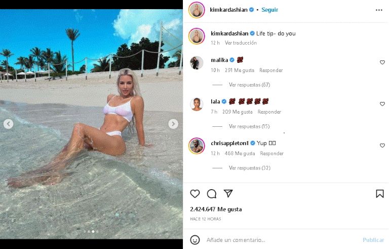 Desde la playa, Kim Kardashian posa con revelador bikini blanco y paraliza Internet