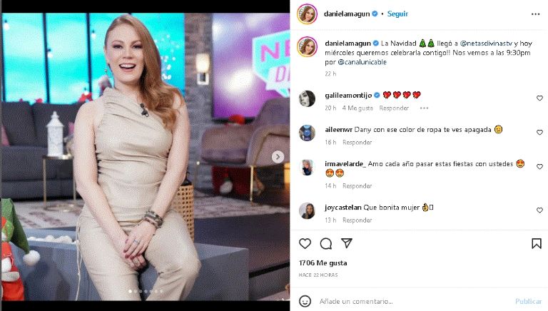 La querida cantante y conductora regresó a las redes sociales y esta vez para mostrar su gran sentido de la moda con un coqueto outfit de otoñoCiudad de México.- La querida famosa conductora de televisión, Daniela Magun, logró poner de cabeza a sus fans de Internet y no para compartir su excéntricos viajes, estilo de vida o los increíbles outfits que usa día con día dentro y fuera de los reflectores del espectáculo, más bien publicó una coqueta fotografía que dejó encantados a sus fieles seguidores de Internet. Una publicación que, si bien, sigue siendo tendencia en las redes.