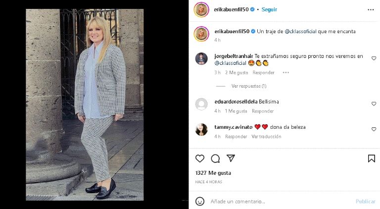 La destacada actriz de telenovelas lució un encantador look gris en Instagram y enamoró a sus fieles seguidoresCiudad de México.- La aclamada estrella de telenovelas, Érika Buenfil, volvió a demostrar su gran sentido de la moda, luego de publicar una coqueta fotografía en su redes sociales. Una publicación que enalteció su distinguida belleza, pues se dejó ver de lo más espectacular desde un set fotográfico.