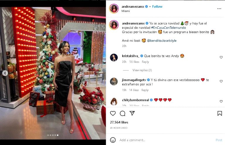 Desde su perfil de Instagram, la exMiss Universo no solo demostró su gran carisma en televisión, sino que además presumió su excelente gusto por las prendas y cómo combinarlas. En la imagen aparece con un destacado vestido negro que resaltó su figura. Una apariencia que en gran medida, enalteció su belleza natural frente a las cámaras del espectáculo internacional.