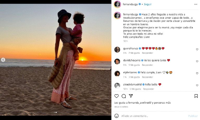 Hace 2 años llegaste a nuestra vida a revolucionarnos , a enseñarnos ese amor capaz de todo , a llenarnos de ternura y de ilusión por verte crecer y convertirte en un hombre bueno.Gracias por elegirme para ser tu mamá ,soy mejor cada día porque tú te lo mereces. ¡Te amo con toda mi alma mi niño! ¡Feliz cumpleaños Liam!", se lee en el post.