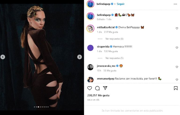 Una prenda que combinó con un peinado suelto liso y un maquillaje en tonalidades cafés que hicieron brillar sus finas facciones. Es por ello que la publicación ya cuenta con más de 200 mil 'Me Gusta' y un sin fin de mensajes que halagan su apariencia, entre ellos: "Hemosa", "Tan bonita", "Qué bonita", Te lo mereces todo de bueno en tu vida mi reina" y más.