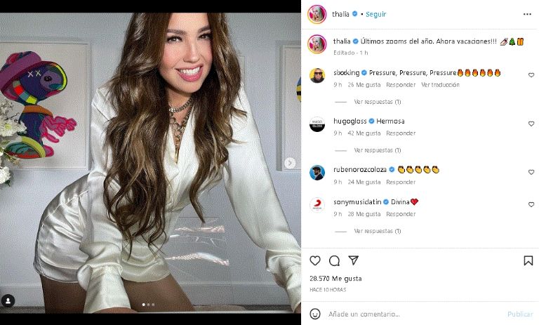 Thalía presume figura con elegante outfit blanco y derrocha belleza en Instagram