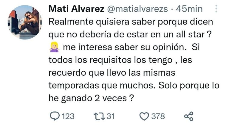 Sin duda, Mati Álvarez es hasta el momento la mujer más dominante de la historia del programa, es la máxima medallista y bicampeona; sin embargo, ahora hay muchos que no quieren volverla a ver en las famosas playas de República Dominicana, así que se cuestiona el por qué ya que ella tiene todo el derecho de participar por el buen desempeño que demostró.