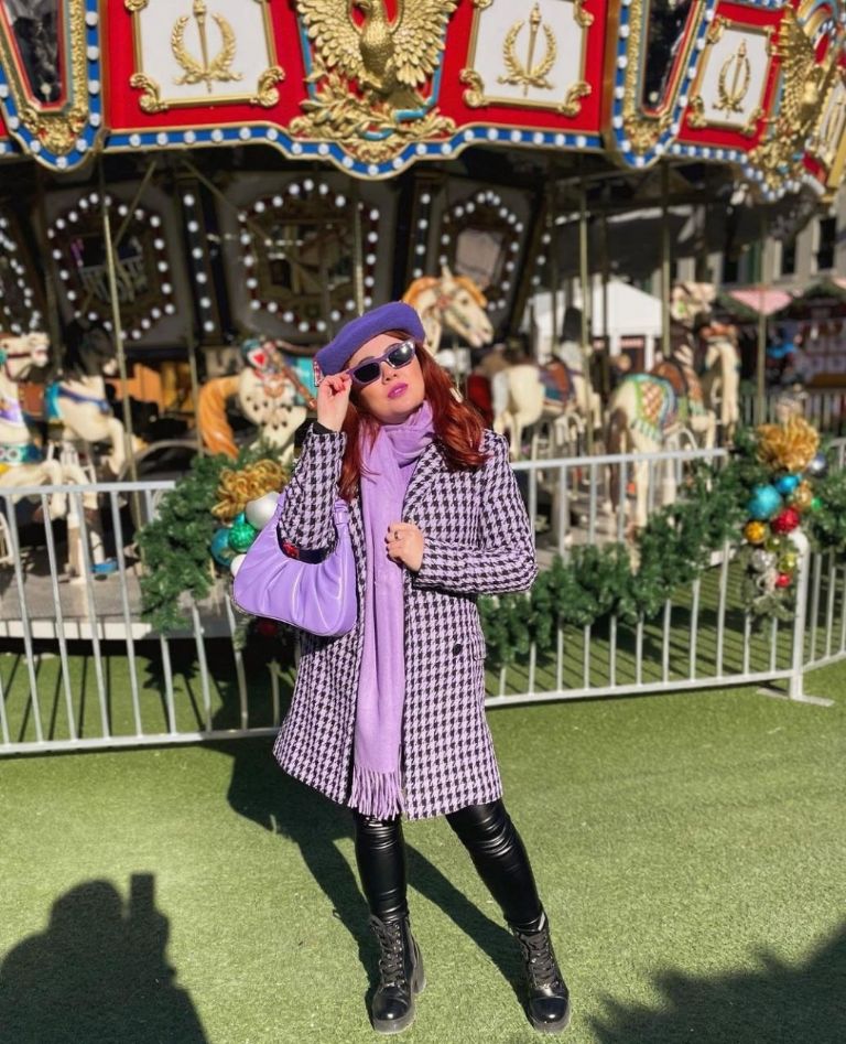 Un clásico de todos los años son los abrigos en cualquiera de sus presentaciones, pero sin duda los largos le dan un toque de mayor elegancia, tal como el que portó la conductora de Envinadas con estampado de pata de gallo en color violeta, los leggins y la vinipiel también son aliados de la temporada y los accesorios no deben faltar, así que ella optó por unas gafas, bufanda y una boina, haciendo un juego de tonalidades.