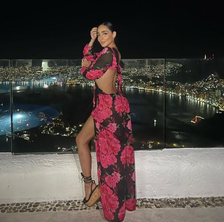 No es un secreto que la 'Pajarita' disfruta del sol y la arena, así que decidió pasar estas fechas junto a su familia nada más y nada menos que en Acapulco, así que para estar acorde al lugar y la ocasión, optó por un maxi vestido de estampado de rosas, el cual tiene un pronunciado escote, una abertura en la pierna y en parte del abdomen, así como la espalda completamente al descubierto.