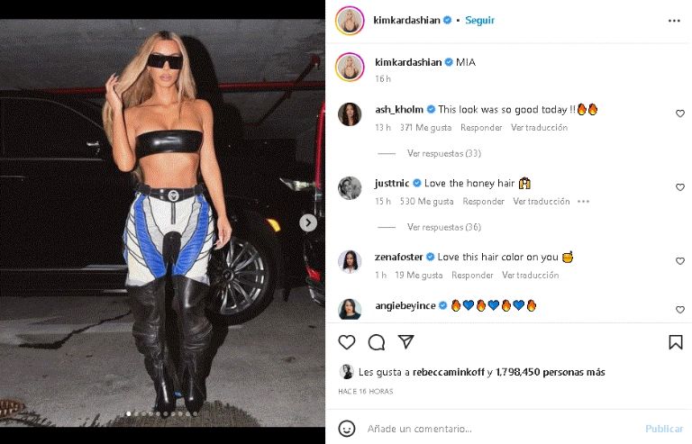 Kim Kardashian regresa a Instagram y luce encantador outfit negro con azul