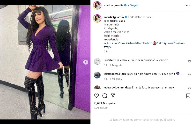 Maribel Guardia posa con coqueto vestido morado y enamora a sus seguidores