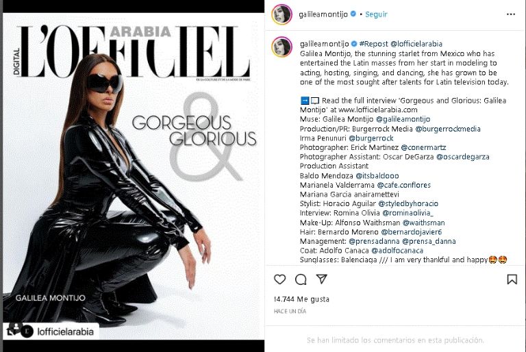 En dicho medio es conocido por ser una revista de moda francesa con edición estadounidense, el cual está dirigido a mujeres de entre 25 y 49 años. Allí Galilea Montijo salió como personaje principal, sin embargo lo que destacó fue su increíble look de invierno este consistió en un entallado conjunto negro de látex que resaltó su esbelta figura. Una combinación que logró paralizar a su fieles seguidores de Televisa, por lo increíble que apareció de los foros de San Ángel.