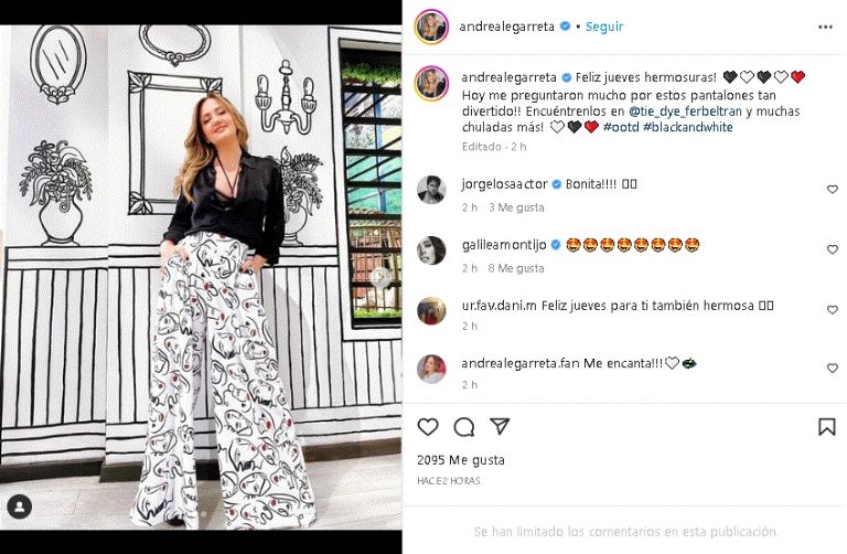 Fue en la transmisión reciente del programa 'Hoy', el cual comparte con Galilea Montijo, Andrea Escalona y Tania Rincón, donde la destacada presentadora de tv presumió su belleza que tanto la ha caracterizado desde su perfil de Instagram, pues compartió una instantánea de su look de otoño y que hizo enloquecer a los fieles televidentes. Este se trató de una blusa negra y un pantalón blanco.