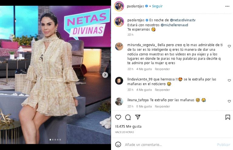 Actualmente , Paola Rojas disfruta de una exitosa carrera dentro de la televisión mexicana, donde ha desempeñado un destacado trabajo dentro de la conducción frente a los reflectores del espectáculo. Un don que sigue presumiendo día con día desde televisión abierta y que deja enamorados a todos los televidentes mexicanos.