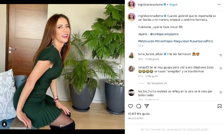 Hasta la fecha, la querida Ingrid Coronado sigue disfrutando de su éxito editorial con la publicación de su libro 'Mujerón', una recopilación textual que narra cómo superar miedos, malas vivencias y batallas internas que yacen en el día a día y que son difíciles de afrontar, pues su principal objetivo es ayudar a sus seguidores a encontra
