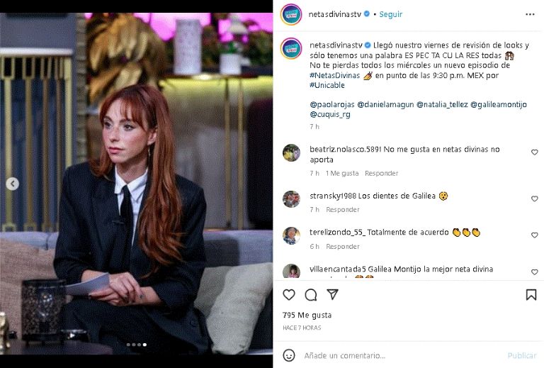 La querida estrella de Unicable sacó el glamour y posó con un encantador look negro desde el programa 'Netas Divinas'Ciudad de México.- La afamada presentadora Natalia Téllez enamoró a sus fieles seguidores de Internet y no por compartir su excéntricos viajes, estilo de vida o los increíbles momentos fuera de los reflectores del espectáculo, más bien publicó una coqueta fotografía que dejó encantados a sus fieles seguidores de Internet. Una publicación que, si bien, sigue siendo tendencia en las redes.