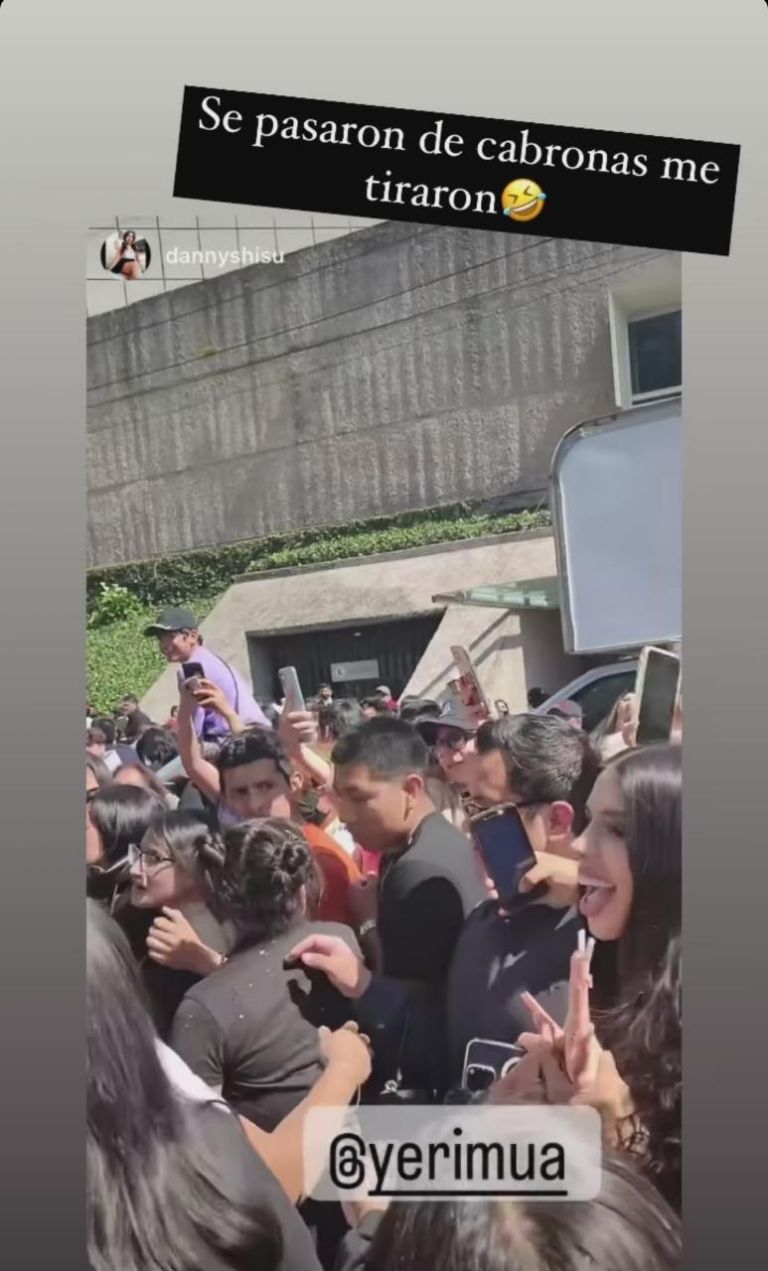 En los pequeños videos que subió se le ve abrazada de Mercury, quien intentaba impedir que la aplastaran, pero eso no fue todo, pues al parecer alguien aprovechó el caos para realizarle tocamientos inapropiados a la famosa ya que minutos más tarde escribió: "¿Quién me metió la mano en el fondillo?"