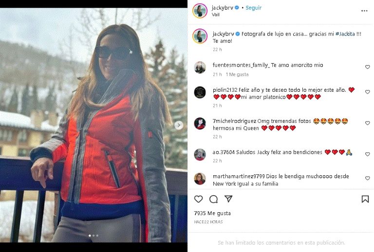 La famosa conductora presumió sus distinguidas vacaciones desde un hermoso lugar y enamoró a sus fieles seguidores de InternetCiudad de México.- La destacada conductora y actriz Jacky Bracamontes volvió a las redes sociales y para compartir su excéntricos viajes, estilo de vida o los increíbles outfits que usa día con día dentro y fuera de los reflectores, ya que publicó una tierna fotografía, pues enamoró al compartir sus excéntricas vacaciones en la nieve.