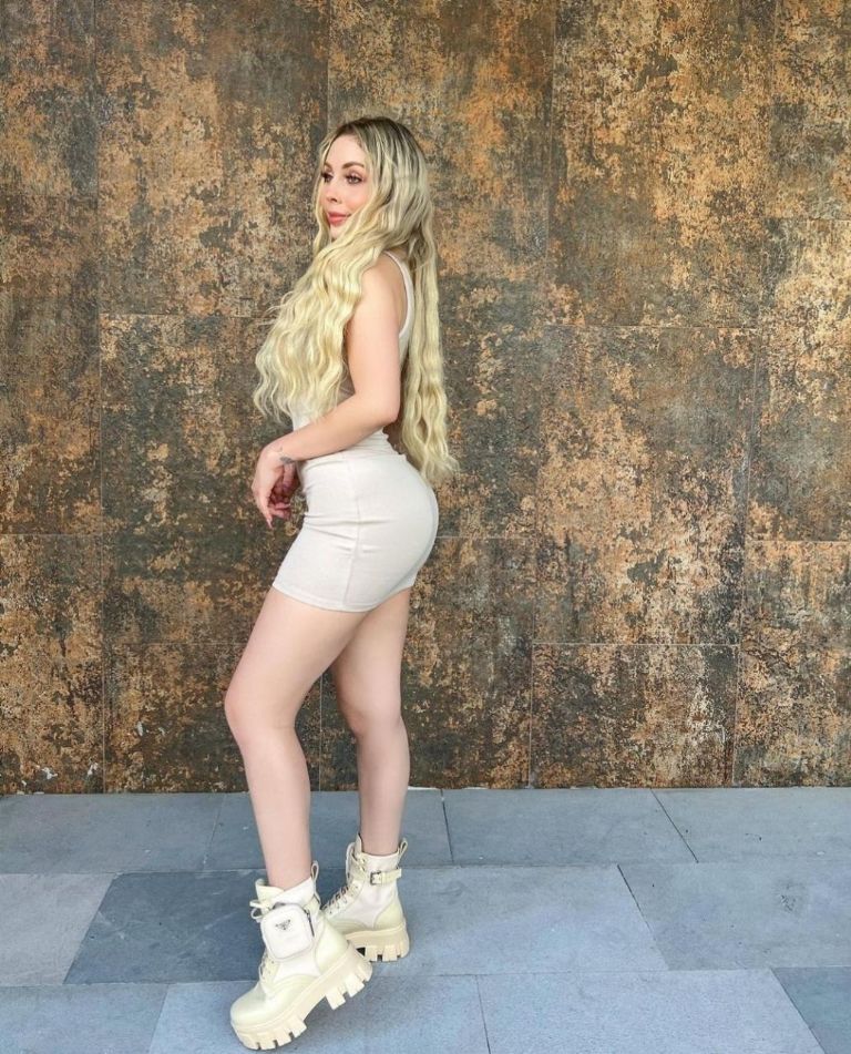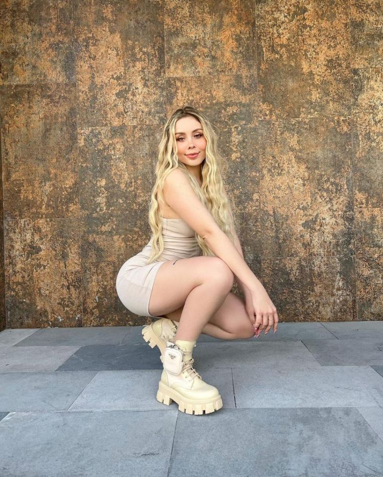 En esta ocasión, la exnovia de Santa Fe Klan eligió un minivestido sin mangas en color nude, mismo que se ciñe perfectamente a sus curvas, mientras que para darle un toque rudo optó por unas botas estilo combate de suela chunky de la misma tonalidad y su cabellera decidió dejarla suelta con unas ondas desenfadadas.
