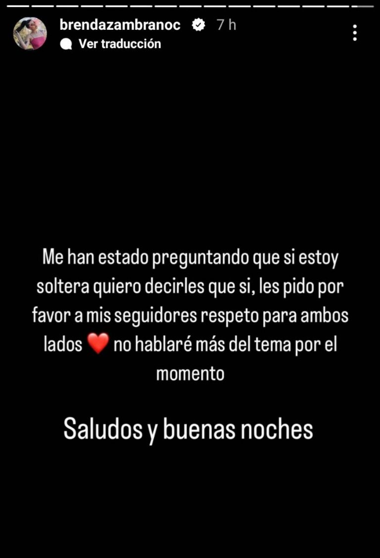 Me han estado preguntando que si estoy soltera y quiero decirles que sí. Les pido por favor a mis seguidores respeto para ambos lados", escribió.