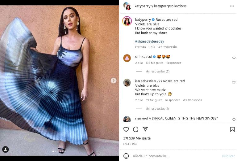 La querida estrella de la música regresó a las redes sociales y esta vez con un encantador vestido azul con negroEstados Unidos- La gran estrella de pop, Katy Perry, se ha posicionado como una de las cantantes más aclamadas de Internet y la escena Internacional por su increíble talento y belleza frente a los reflectores del espectáculo. Y esta vez decidió presumir su destacada apariencia en redes sociales con una coqueta fotografía que la hizo brillar por toda la red.