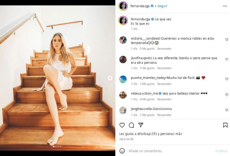 A través de una instantánea desde sus redes sociales, la estrella de la pantalla chica y aclamada estrella de Televisa posó con un destacado vestido blanco que, en gran medida, enalteció su belleza natural frente a los reflectores mexicanos, por lo que sus fans no han dejado de elogiarla y escribirle mensajes de cariño por su gran sentido de la moda, entre ellos destacan: "Guapa", "Hermosa", "Linda", Qué preciosa", entre otros.