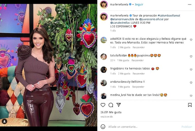 La distinguida instantánea ya cuenta con más de cinco mil 'Me Gusta' y un sin fin de mensajes que halagan su apariencia, entre ellos destacan: "Marlenefavela estas guapisima en esta fotografía, excelente actriz mexicana, y muy simpática te mando un saludo desde. España, ya que eres una de mis actrices favoritas guapa", "odo un monumento de mujer", "Hermosa", "Tan Linda".