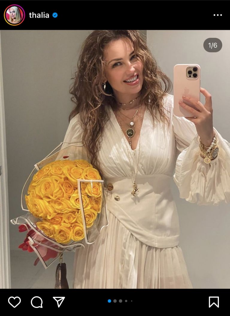 Thalía se enfunda en destacado vestido blanco y enamora a sus fans de Instagram