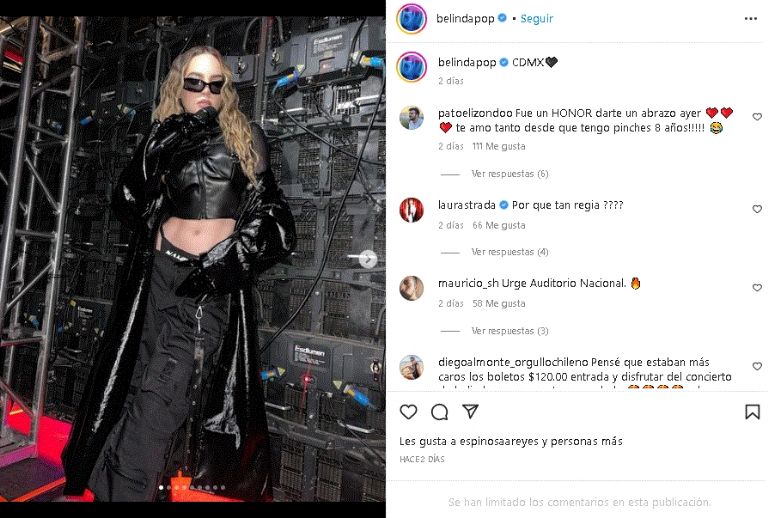 La estrella de pop no se limitó y sacó el glamour con este increíble conjunto negro desde InstagramCiudad de México.- La aclamada estrella de pop, Belinda, volvió a demostrar su gran sentido de la moda, luego de publicar una coqueta fotografía en su redes sociales. Una publicación que enalteció su distinguida belleza, pues se dejó ver de lo más espectacular desde un carro.