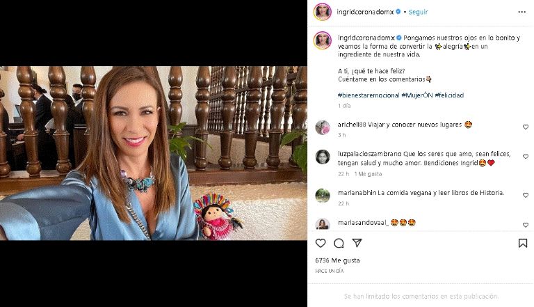 Hasta la fecha, la querida Ingrid Coronado sigue disfrutando de su éxito editorial con la publicación de su libro 'Mujerón', una recopilación textual que narra cómo superar miedos, malas vivencias y batallas internas que yacen en el día a día y que son difíciles de afrontar, pues su principal objetivo es ayudar a sus seguidores a encontrar una paz en su interior con tal de superarse en diferentes áreas.