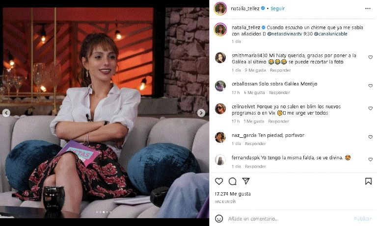 La querida estrella de 'Netas Divinas' luce encantador look de día desde Unicable y enamoró a sus fieles seguidoresCiudad de México.- La afamada presentadora Natalia Téllez enamoró a sus fieles seguidores de Internet y no por compartir su excéntricos viajes, estilo de vida o los increíbles momentos fuera de los reflectores del espectáculo, más bien publicó una coqueta fotografía que dejó encantados a sus fieles seguidores de Internet. Una publicación que, si bien, sigue siendo tendencia en las redes.