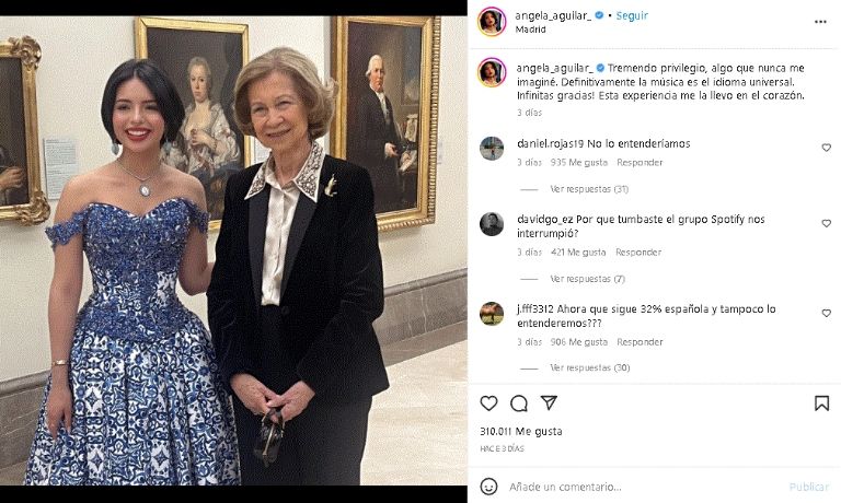 Resulta que la joven mexicana brindó un concierto exclusivo en España, en el cual acudió la realeza. Este fue el Premio Iberoaméricano de Mecenazgo celebrado en la Real Academia de Bellas Artes de San Fernando, en Madrid. Dicha presentación fue para recaudar fondos para una noble causa organizada por la Fundación Reina Sofía, según detalló su padre hace unos días, la intérprete de “Qué agonía” estuvo acompañada por dos guitarristas sevillanos que representaron la cultura musical del país europeo.