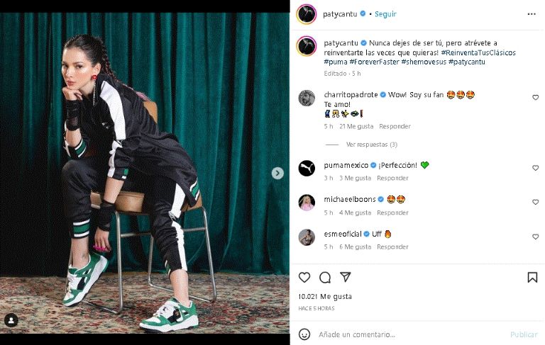 La aclamada estrella de pop lució un encantador look deportivo y enamoró a sus fieles seguidores de InstagramCiudad de México.- De nueva cuenta la cantante de pop , Paty Cantú, logró cautivar a sus seguidores, luego de presumir su belleza con una coqueta fotografía desde sus redes sociales. Una publicación que no dudo en compartir vía Instagram y que dejaron en shock a todos sus seguidores de Internet.