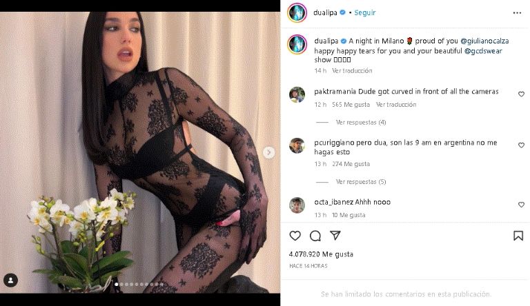 La afamada estrella de pop se enfundó en un elegante vestido negro de encaje y enamoró a sus fieles seguidores de InternetEstados Unidos.-Una vez más la querida cantante de pop, Dua Lipa, enamoró a todos sus seguidores, luego de posar con un coqueto outfit oscuro que le queda a la perfección. Un atuendo que no dudo en compartir vía Instagram con unas impactantes fotografías de su distinguida apariencia física que dejaron en shock a todos sus fieles seguidores de Internet.