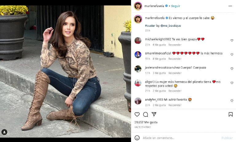 La distinguida instantánea ya cuenta con más de 14 mil 'Me Gusta' y un sin fin de mensajes que halagan su apariencia, entre ellos destacan: "Marlenefavela estas guapisima en esta fotografía, excelente actriz mexicana, y muy simpática te mando un saludo desde. España, ya que eres una de mis actrices favoritas guapa", "odo un monumento de mujer", "Hermosa", "Tan Linda".