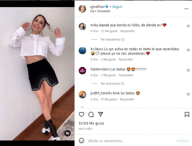 Dicha publicación ya cuenta con más de 53 mil 'Me Gusta', además de que sus fieles admiradores no han parado de escribirle decenas de mensajes de cariño, piropos y elogios, entre ellos: 'Guapísima', 'Hermosa' y más. Sin embargo, esta no es la primera vez que Cynthia Rodríguez comparte sus distinguidos outfits en Internet, ya que siempre le gusta estar activa con sus seguidores para mostrar su buen sentido de la moda.