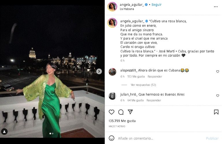 Ángela Aguilar se enfunda en distinguido vestido verde y le llueven halagos